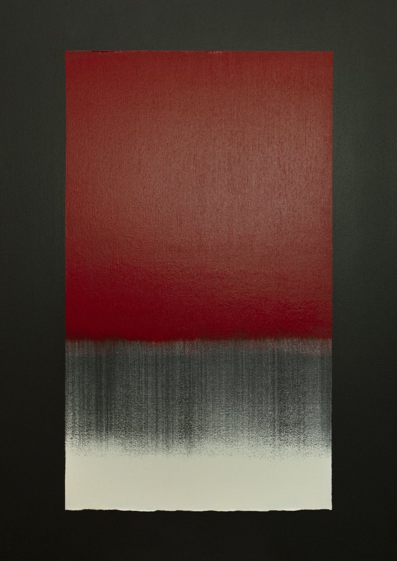 김수수는 불을 표현하기 위해 일필휘지의 방식을 택한다. 화면을 가득 채우는 불의 기운은 한 번의 붓질로 포착되며, 그 이전의 수많은 붓질은 불의 색과 시간의 층위를 쌓아 올린다.