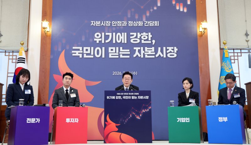 18일 이재명 대통령이 주재한 '자본시장 안정과 정상화 간담회'가 열렸다. 행사에는 이억원 금융위원장과 이찬진 금융감독원장, 증권사 사장단을 비롯해 기관투자자, 코스닥·코넥스 상장기업 관계자, 청년·개인투자자 등이 참석했다.