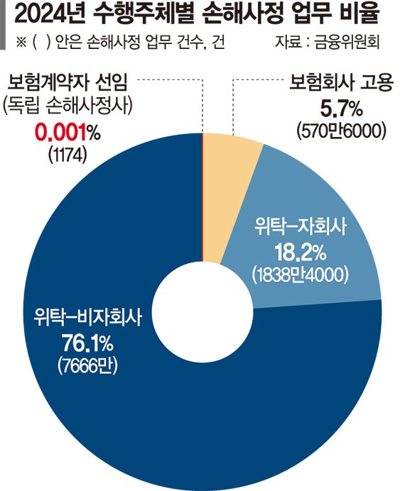 18일 금융위원회에 따르면 지난 2024년 기준 국내 손해사정 업무 가운데 보험계약자가 직접 독립손해사정사를 선임한 경우는 1174건으로 집계됐다.