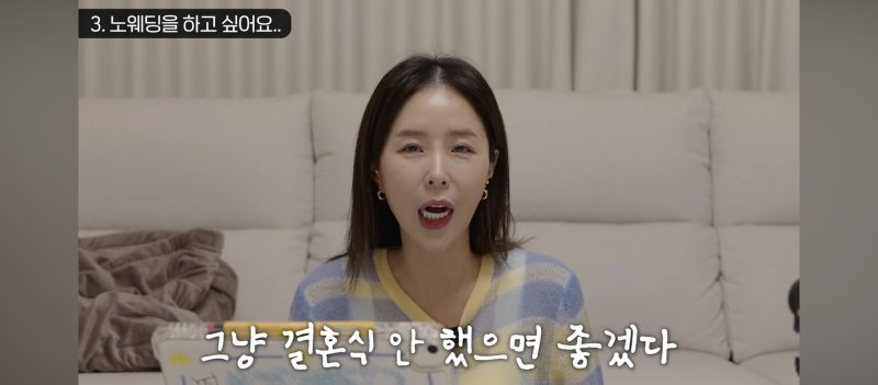 이어 "준비 과정에서 생각보다 추가되는 비용이 많아 '진짜 결혼식을 안 했으면 좋겠다'는 생각을 하기도 했다"며 "우리는 이미 같이 살고 있어 많은 분이 사실혼 관계로 생각하고 계시지 않느냐"고 덧붙였다.