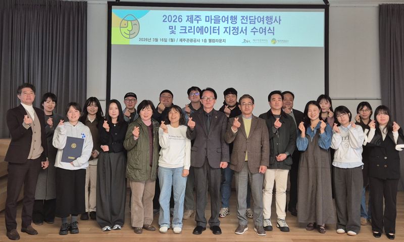 제주특별자치도와 제주관광공사는 제주 웰컴센터에서 ‘2026 제주 마을 여행 전담 여행사 및 크리에이터’ 지정서 수여식을 열고 총 11개 업체를 공식 지정했다고 밝혔다.