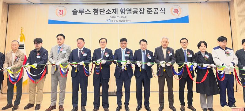 솔루스첨단소재는 지난 18일 전라북도 익산시 함열에서 ‘함열 OLED 공장 준공식’을 개최했다고 19일 밝혔다. 행사에는 김태형 솔루스첨단소재 사장을 비롯한 주요 임직원과 김종훈 전라북도 경제부지사, 정헌율 익산시장 등 관계자들이 참석했다.
