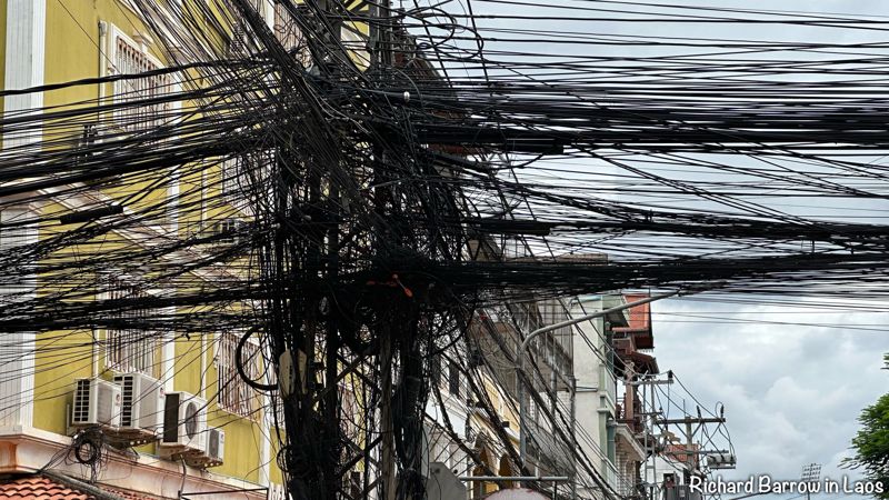 [파이낸셜뉴스] 라오스 수도 비엔티안의 전봇대에 뒤엉킨 공중 전선들이 관광 명소로 떠올라 화제다.