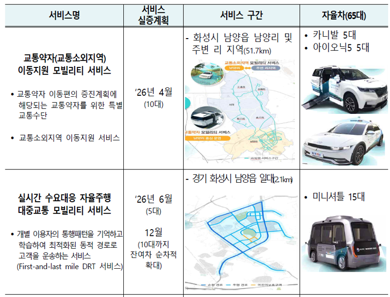 사전 시승 행사에서는 김윤덕 장관이 교통소외지역 이동지원 차량에 시험운전자로 직접 탑승해 지역 주민과 함께 이동할 계획이다.