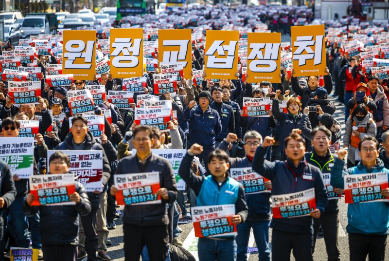 19일 국회 기후에너지환경노동위원회 야당 간사인 김형동 국민의힘 의원이 고용노동부로 제출받은 자료에 따르면 지난 18일까지 하청노조 총 683곳이 원청사업장 287곳을 상대로 교섭을 요구했다. 교섭을 요구한 하청노조에 소속된 총 조합원 수는 12만7019명으로 10만명을 훌쩍 넘겼다.