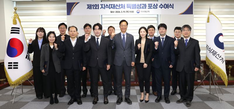 지원 분야에서는 지난해 10월 지식재산처 출범으로 범정부 지식재산 거버넌스 구축에 기여한 유성전·박인표 사무관이 공동으로 700만원의 포상금을 받았다. 이들은 우리기업·국민이 지식재산분쟁 걱정 없이 사업하고 거래할 수 있는 체계를 마련한 공로를 높게 인정받았다.