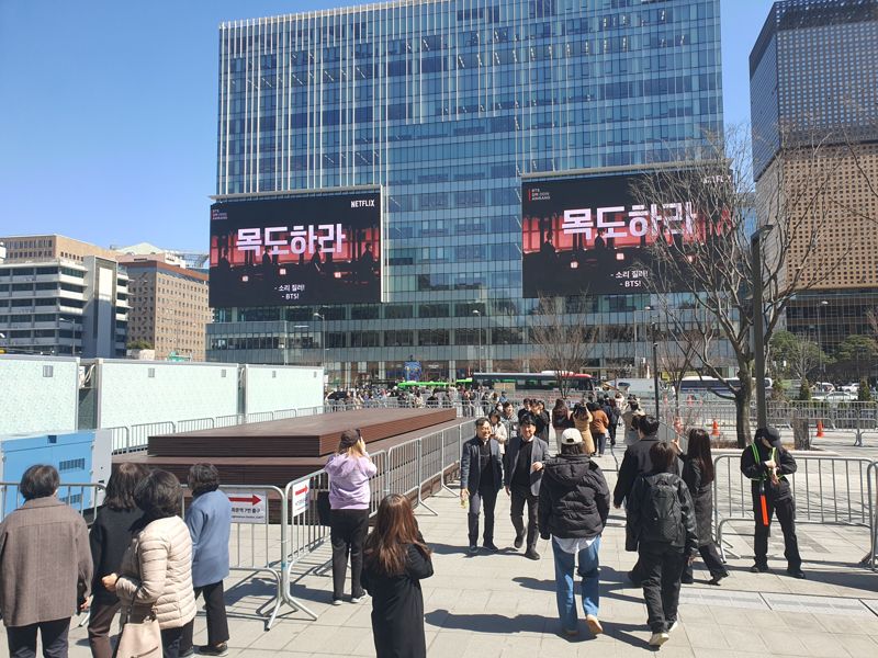 다만 대규모 인파 운집에 따른 안전 문제를 걱정하는 목소리도 나왔다. 종로 인근에서 근무하는 직장인 A씨(40대)는 "국제 정세가 어수선한 상황에서 이렇게 큰 공연이 열리는 게 걱정되기도 한다"며 "도심에서 전례 없는 규모의 행사가 열리는 만큼 큰 사고나 불편이 없길 바란다"고 말했다.