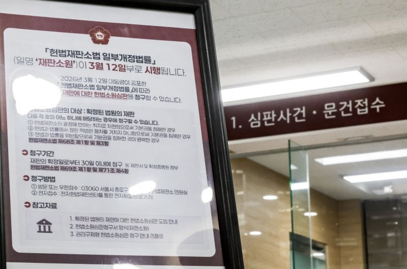 19일 헌재에 따르면 제도 첫 시행일인 지난 12일부터 전날까지 헌재에 재판소원을 청구한 건수는 전자접수 65건, 방문접수 11건, 우편접수 31건 등 총 107건으로 집계됐다.