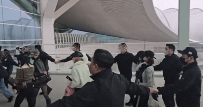 이에 경호 인력들은 멤버들을 보호하고 이동 동선을 확보하기 위해 서로 손을 맞잡고 원을 그리며 이동하는 방식을 취했다.