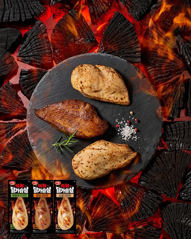 하림의 '직화 닭가슴살'은 신선한 닭가슴살을 특제 양념에 12시간 동안 냉장 숙성해 양념이 속까지 깊게 밸 수 있도록 했으며 오븐에 두 번 익히는 초벌 과정을 거쳐 수분 손실 없이 부드러운 식감을 극대화했다.