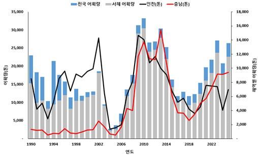 올해 봄철 어기 꽃게 어획량 증가 요인은 크게 세 가지다. 먼저 지난해 가을 꽃게 산란량과 가입량이 증가했다. 겨울철 황해난류의 서해 수송량 증가와 서해 연근해 표층수온이 전년보다 높은 것도 영향을 준다. 황해난류는 겨울철 남쪽에서 서해안으로 유입되는 표층수온 10도 기준의 해류를 말한다.