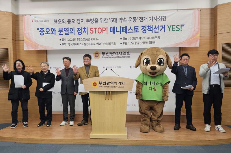 한국매니페스토실천본부와 본부 부산울산경남네트워크는 20일 오후 부산시의회 브리핑실에서 기자회견을 열고 ‘혐오·증오 정치 추방을 위한 5대 약속 운동’ 추진을 선언했다.