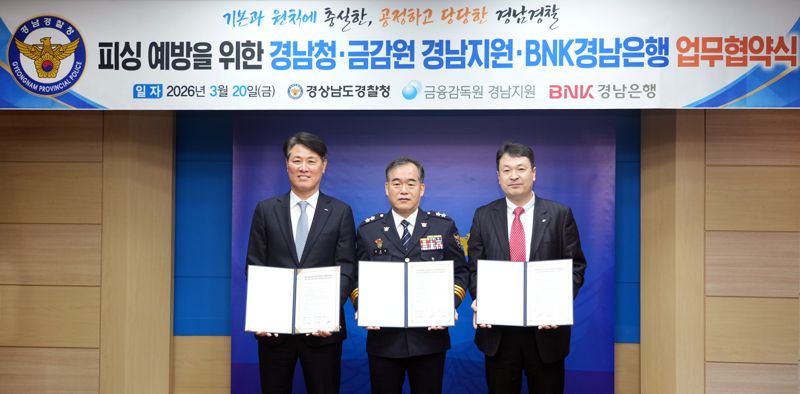 경남은행은 20일 경남경찰청·금융감독원 경남지원과 '피싱범죄 예방 및 협력을 위한 업무협약'을 체결했다고 밝혔다.