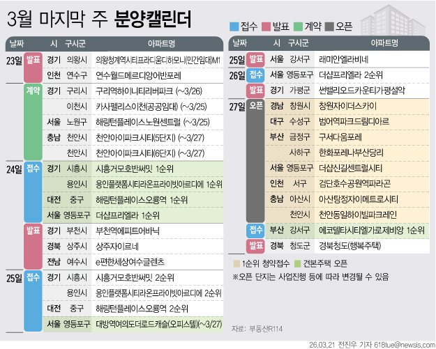 21일 부동산R114에 따르면, 청약 일정은 서울 영등포구 문래동5가 '더샵프리엘라', 경기 용인시 영덕동 '용인플랫폼시티라온프라이빗아르디에', 부산 강서구 강동동 '에코델타시티엘가로제비앙' 등에서 진행된다.