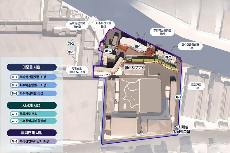 사업 시행은 인천 동구청이 하고 핵심 사업으로는 마중물 사업인 뿌리혁신플랫폼, 화수어울림센터, 화수혁신마을 조성 등이 추진된다.