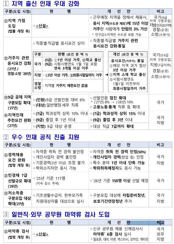 공무원 채용 지역출신 우대 강화 등 제도 개선 방안