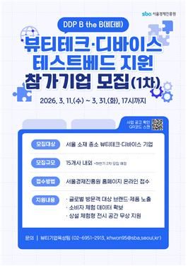 이 사업은 기업이 소비자를 대상으로 제품과 기술을 직접 테스트하고 데이터를 확보할 수 있도록 지원하는 프로그램이다. 진흥원은 서울 소재 중소 뷰티테크 및 디바이스 기업의 소비자 접점 확대와 기술 경쟁력 강화를 유도할 계획이다.
