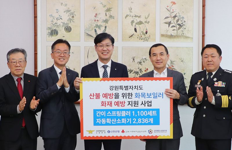 [파이낸셜뉴스] 신한은행은 23일 강원 지역 산불 예방을 위한 '화목보일러 화재 예방 지원사업' 추진을 위해 사회복지공동모금회 강원지회에 1억8000만원의 후원금을 전달했다.