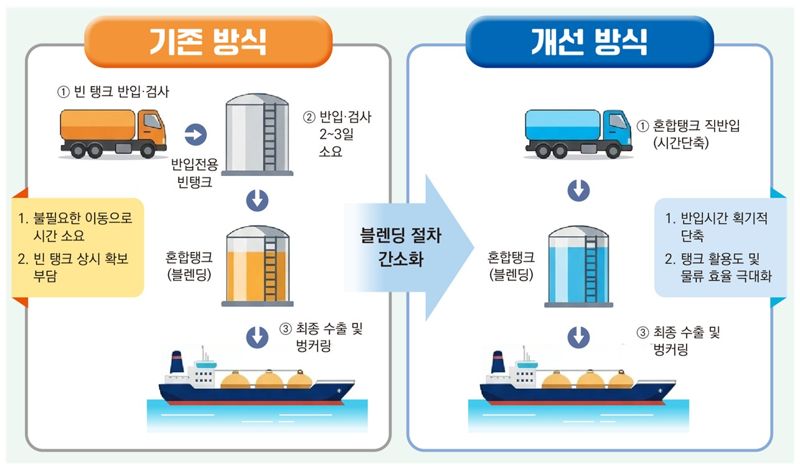개정안에 따라 앞으로는 불필요한 이송 절차를 생략하고 혼합용 탱크에 블렌딩 원재료를 바로 투입할 수 있게 된다. 이에 따라 블렌딩 기간 단축과 탱크 활용도 향상이 기대된다. 부산·울산·여수 지역의 블렌딩 활성화와 국제무역선 벙커링 확대에도 도움이 될 전망이다.