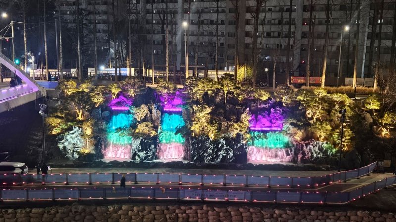 성산동 월드컵천에 경관폭포…"마포의 새로운 상징"LED 조명으로 야간 볼거리…내달 수변 카페도 준공