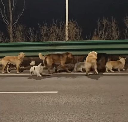 24일 홍콩 사우스차이나모닝포스트(SCMP)에 따르면 지난 16일 중국 지린성 창춘의 한 고속도로를 따라 개 7마리가 이동하는 모습이 포착됐다.
