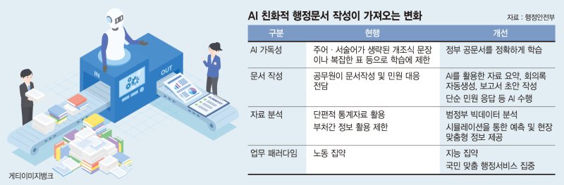 정부가 복잡한 보고서 작성 관행을 해결하기 위해 팔을 걷어붙였다. 행정안전부는 24일 공무원들의 보고서 작성 관행을 혁신하기 위해 'AI 친화 행정문서 작성 가이드라인'을 시범 실시한다고 밝혔다. 이번 조치는 지난해 말 대통령 업무보고에서 제기된 인공지능(AI) 시대에 맞는 행정문서 체계 혁신 필요성에 따른 후속 조치다.