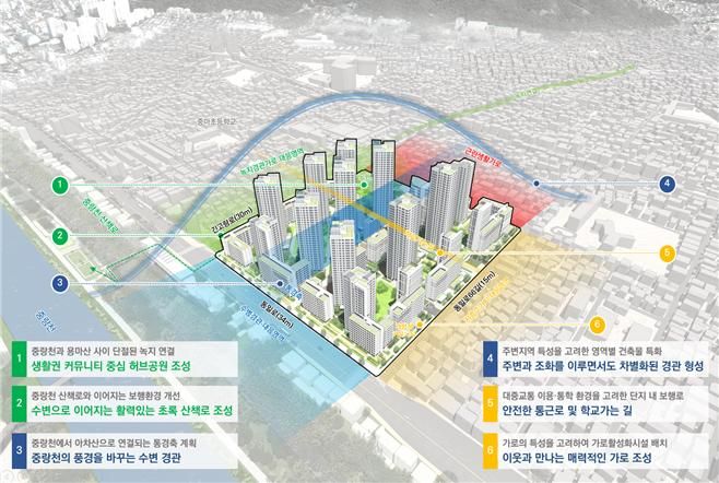 시는 이곳이 중곡동 일대 지역 변화를 견인할 수 있도록 △중랑천과 용마산·아차산을 잇는 녹지체계 구축 △중곡동의 변화를 이끄는 특화 주거단지 조성 △생활 편의와 안전을 높이는 교통·보행체계 개선 등 3가지 계획 원칙을 마련했다.