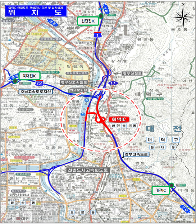 회덕IC 연결도로 건설공사는 연장 0.8km, 왕복 6차로 규모로 경부고속도로와 대전시 천변도시고속화도로를 직접 연결하는 사업이다.
