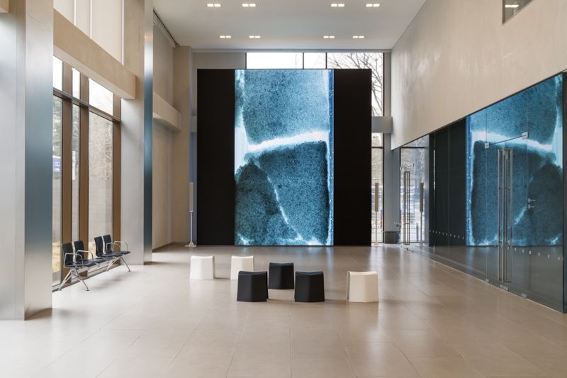 ‘88 Cores’는 약 11만 년에 걸쳐 형성된 그린란드 빙하를 따라 약 3.2km 아래로 내려가는 영상이다. 1989~1993년 진행된 빙하 프로젝트에서 채취한 코어 88개의 색감을 디지털화해 구성했으며, 얼음층에 갇힌 공기와 가스를 통해 과거의 시간을 추적하는 경험을 제공한다.