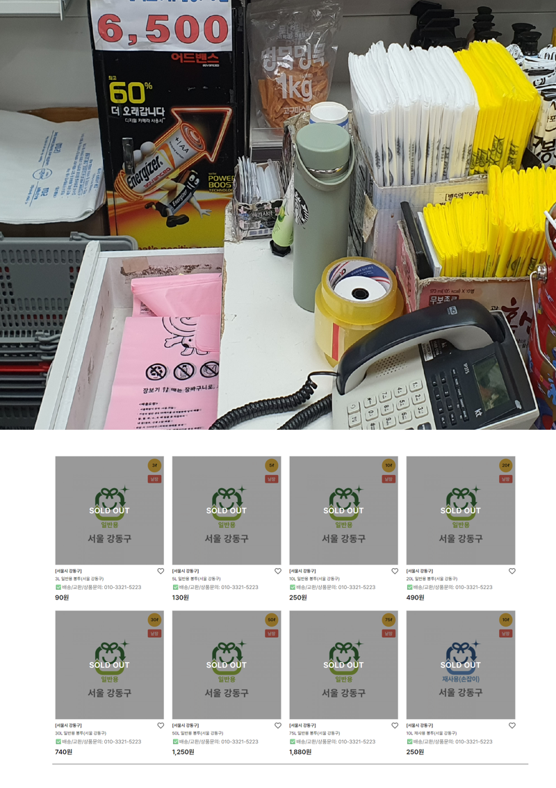 온라인에서도 품귀 조짐이 확인된다. 종량제 봉투 판매처 '종량제닷컴'을 같은 날 살펴본 결과 서울 지역 18개 자치구 가운데 강남, 강서, 마포구 등 10곳은 전 용량이 품절 상태였다.