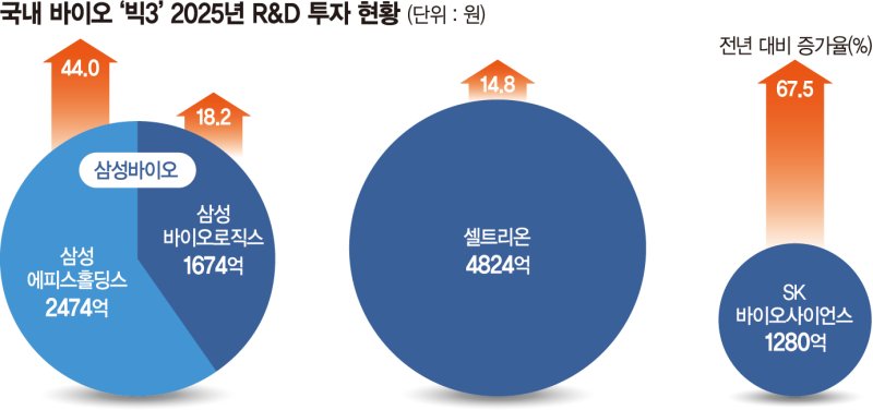 25일 업계에 따르면 삼성바이오로직스·삼성에피스홀딩스, 셀트리온, SK바이오사이언스 등의 지난해 R&D 투자 합산액이 사상 처음으로 1조원 시대를 열었다.