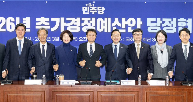 한병도 민주당 원내대표는 이날 국회 의원회관에서 열린 추경 관련 당정협의회에서 "국제정세, 민생경제 등 여러 상황이 녹록지 않다. 중동 상황 확대와 장기화로 경제 충격이 확산하고 있다"며 "경제위기에 기민하게 대처하고 국민경제에 미치는 영향을 최소화하기 위한 추경 편성·집행이 아주 시급하다"고 강조했다.
