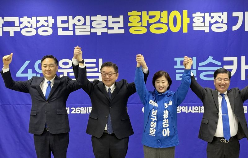 황 후보는 끝으로 "일자리가 넘치고 교육과 문화가 살아 숨 쉬며, 소외되는 이웃 없는 따뜻한 남구 공동체를 반드시 만들겠다"면서 "민주당의 가치를 세우고 남구의 더 큰 내일을 열어갈 황경아와 '원팀'의 행보에 함께해 달라"라고 지지를 호소했다.
