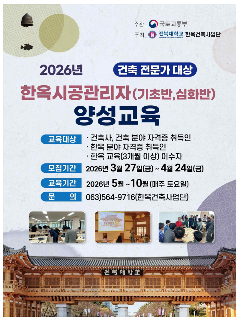 한옥 건축 설계 및 시공관리 전문교육 접수