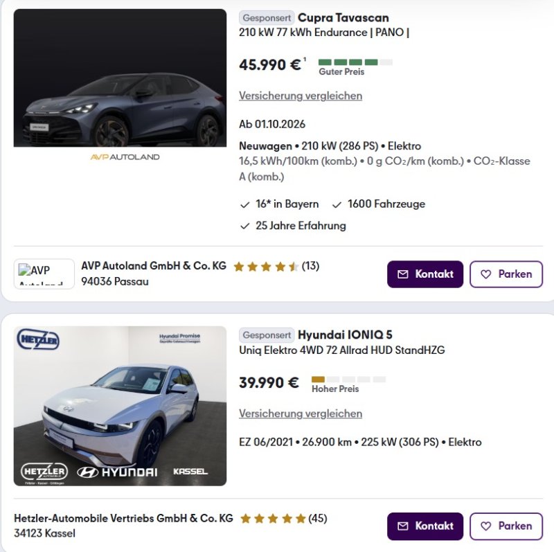 독일 최대의 온라인 자동차 거래 사이트인 '모바일'(mobile.de)은 전기차 검색 비중이 이달 초 12%에서 현재 36%로 뛰었으며, 자동차 딜러들은 2월 대비 중고 전기차 문의가 66% 증가했다고 밝혔다.