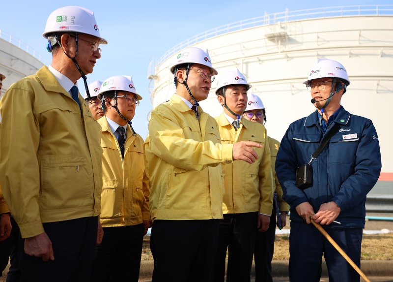 [파이낸셜뉴스] 이재명 대통령이 26일 충남 서산 한국석유공사 비축기지를 찾아 저장시설과 부두 운영 현황을 점검하며 안전관리 체계를 확인했다.
