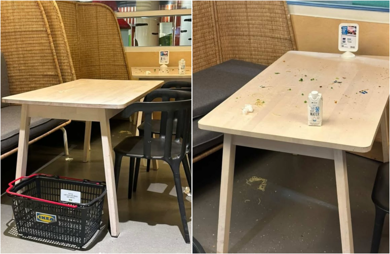공개된 두 장의 사진을 보면 한 장은 식사를 마친 테이블 아래에 이케아 쇼핑 바구니가 방치돼 있다.