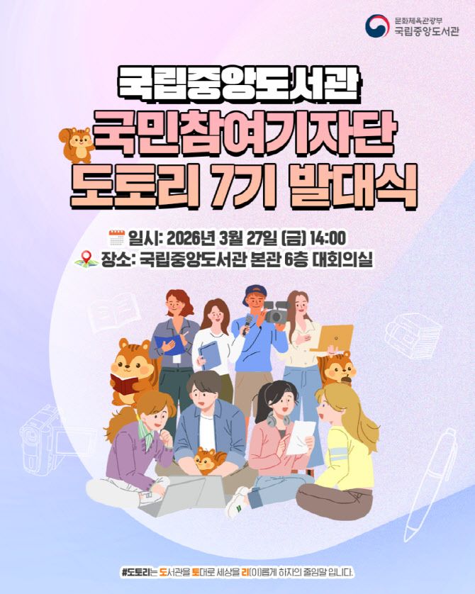 [파이낸셜뉴스] 국립중앙도서관은 국민참여기자단 ‘도토리 7기’를 선발하고, 발대식을 시작으로 본격적인 활동에 들어간다고 27일 밝혔다.