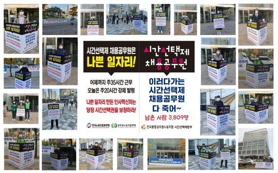 전국시간선택제공무원노동조합(시간선택제노조)은 27일 7년간의 투쟁 끝에 시간선택제 공무원의 근무시간 강제 변경이 폐지된 점을 환영했다. 이날부터 시행되는 '공무원 임용규칙' 개정안에 따라 시간선택제 공무원의 주당 근무시간은 당사자의 신청이 있을 때만 변경할 수 있게 됐다.