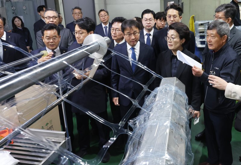 한병도 민주당 원내대표는 이날 산업통상부와 중소벤처기업부 등 관계부처와 함께 경기 광주 플라스틱 제조업체를 찾아 현장간담회를 가졌다.