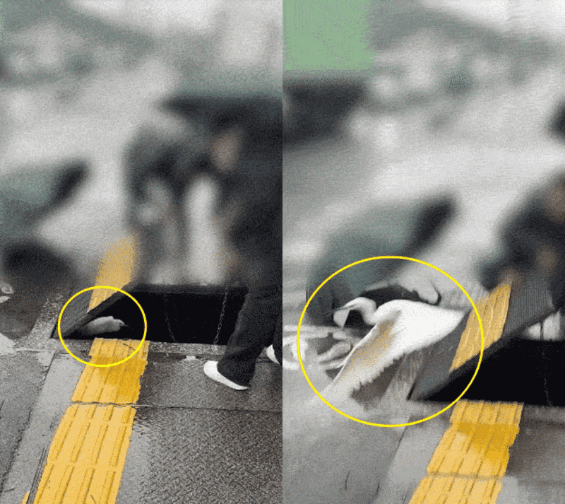그러나 다음 날 아침 폭우가 쏟아지자 상황이 더 악화될 것을 우려한 가족은 다시 현장을 찾았다. A씨는 "폭우가 쏟아지자 도저히 그냥 넘길 수가 없어서 어제 그 장소로 다시 서둘러 가봤는데, 새는 여전히 그곳에 있었다"며 "남편이 호텔에서 챙겨온 노끈과 나무젓가락으로 맨홀을 열어 새를 구조하는 데 성공했다"고 설명했다.