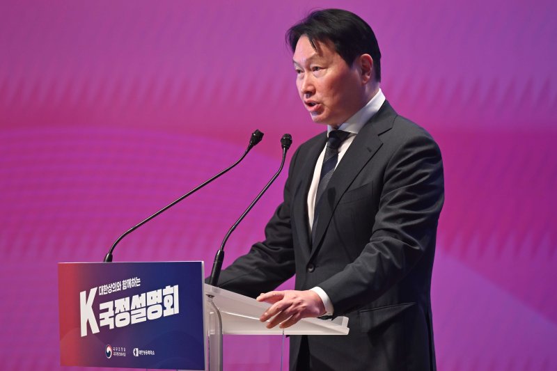 최 회장은 'K-국정현안 간담회' 인사말에서 "중동 정세를 비롯해 대외 여건이 녹록지 않다"며 "이럴 때일수록 정부와 기업이 신뢰라는 등불을 들고, 불확실성을 헤쳐가야 한다. 대한상의가 든든한 정책 파트너 역할을 다하겠다"고 말했다.