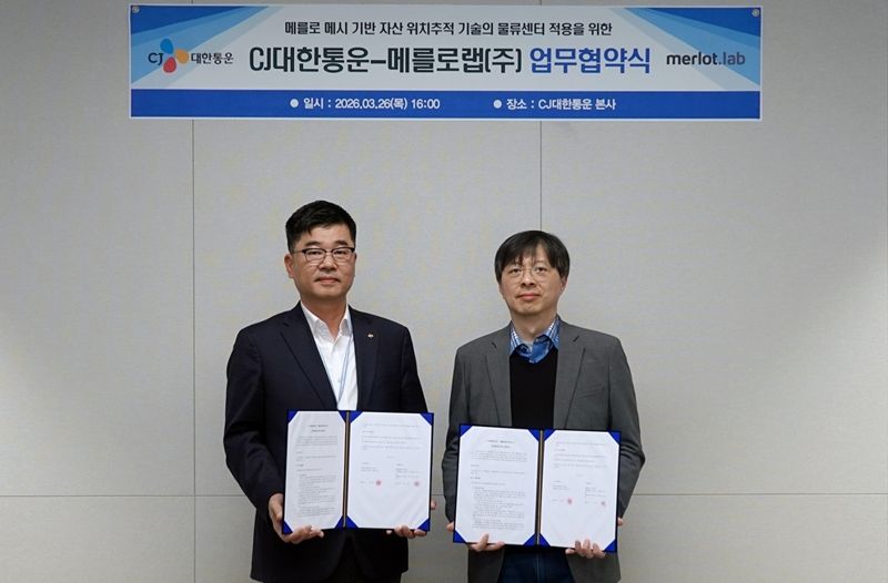 29일 CJ대한통운에 따르면 메를로랩과 협약을 체결, 스마트 LED·실내 위치추적 시스템(IPS) 기반 작업자 위치정보 측정 기술 공동 개발에 나선다. 이번 협약은 조명 인프라에 부착된 사물인터넷(IoT) 센서를 통해 작업자 위치와 동선을 분석한 뒤 관련 데이터를 기반으로 현장 안전관리와 생산성을 강화하는 내용을 포함한다.