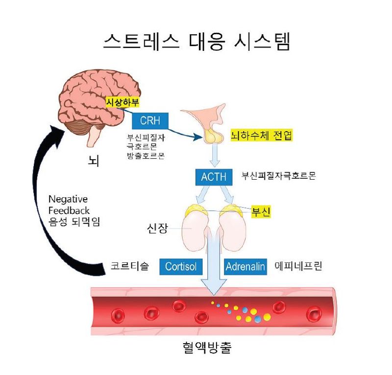 문제는 투쟁 혹은 도피 상황이 발생하면 마음에 불안과 두려움이 생긴다는 것이다. 이 상태로는 몸에 기운이 빠지고 정신이 흐려져서 제대로 대처할 수 없다. 시상하부는 이 상황을 빠르게 인지해서 재빨리 몸을 변화시킨다. 싸우거나 도망칠 수 있도록 온몸에 에너지를 솟구치게 만든다. 먼저 시상하부는 부신피질자극호르몬 방출호르몬을 분비하여 뇌하수체로 보낸다. 그러면 뇌하수체 전엽에서 부신피질자극호르몬이 분비된다. 이것이 혈액을 타고 부신에 이르면 부신피질에서 코르티솔을 분비한다. 코르티솔은 순식간에 동공을 확장시키고, 혈관을 수축시키고, 심장을 마구 뛰게 하여 팔다리로 혈액을 보낸다. 탄수화물을 빠르게 대사시켜 포도당을 뇌로 올려 보낸다. 덕분에 몸에 힘이 솟구치고 정신이 번쩍 나서 우리는 스트레스에 대항할 힘을 얻는다.