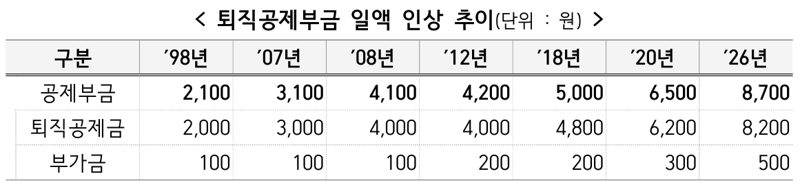 이번 인상으로 하루 기준 퇴직공제금은 8200원으로 2000원(33.8%) 늘고, 부가금은 300원에서 500원으로 상향된다. 인상된 부가금 재원은 청년층 기능향상 훈련 확대, 취업지원 거점센터 운영, 상조 서비스 지원, 스마트 안전장비 지원 등 복지와 고용환경 개선 사업에 활용될 예정이다.