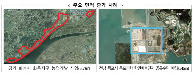 이번 증가분은 경기 화성 화옹지구 농업개발사업(5.7㎢), 전남 목포신항 항만배후단지 조성(0.46㎢) 등 대규모 토지개발과 공유수면 매립 사업 영향이 컸다. 지적공부에 등록된 국토 면적은 통계 작성 이후 매년 증가하고 있으며, 개발 중심의 확장 구조가 이어지고 있는 것으로 나타났다.