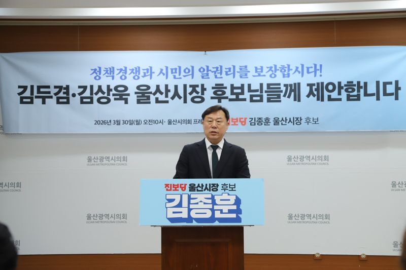【파이낸셜뉴스 울산=최수상 기자】 김종훈 진보당 울산시장 후보는 30일 울산시의회에서 기자회견을 열고 시민들의 알 권리와 정책 경쟁을 위해 더 많은 토론회를 열자고 국민의힘 김두겸 후보와 더불어민주당 김상욱 후보에 제안했다.