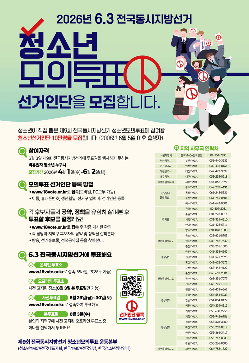 본부는 오는 6월 전국동시지방선거를 맞아 총 10만 명 규모의 청소년 선거인단을 모집한다.