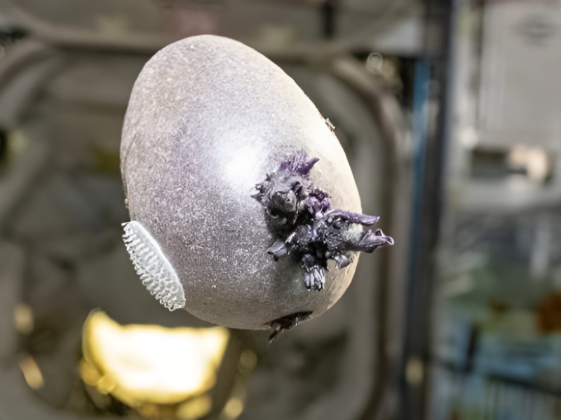 해당 물체의 정체는 페팃이 ISS 72차 탐사 기간(2024년 9월~2025년 4월) 중 직접 재배한 자색 감자였다. 돌기는 감자에서 난 싹눈이었다.