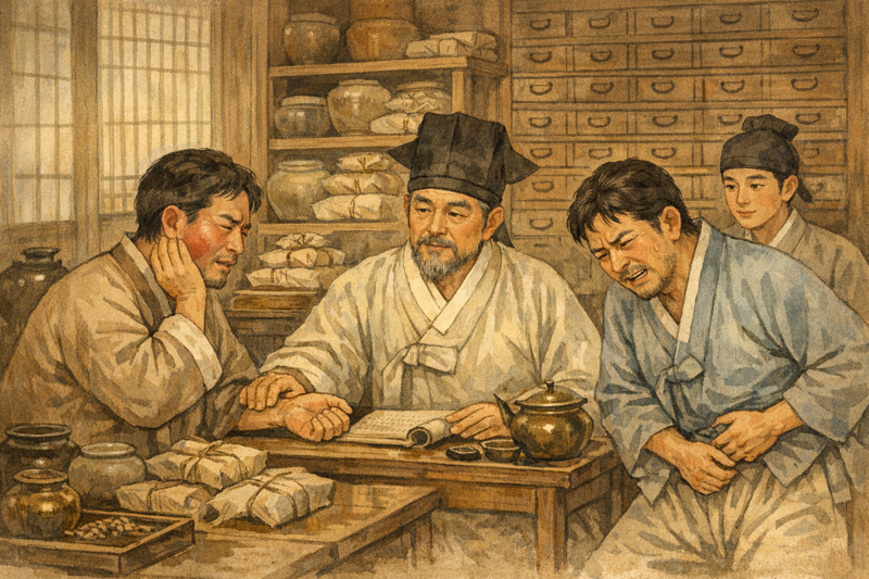 춘삼은 동네 명의에게 다시 진찰을 받았다. 명의는 춘삼에게 나타나는 증상을 물어보고 나서 진맥을 했다. 진맥을 하던 명의는 고개를 끄덕거렸다.
